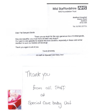 And now, from Stafford hospital upon receipt of some of the charity knitting