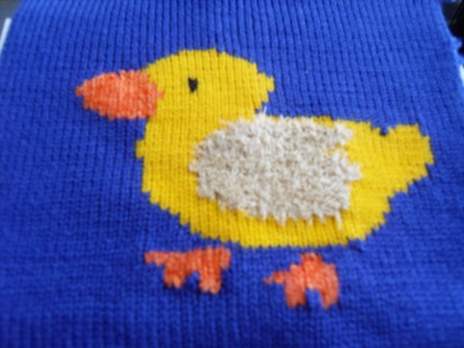 This blanket is from a pattern in Machine Knitting Monthly October 2010 – hot off the press!