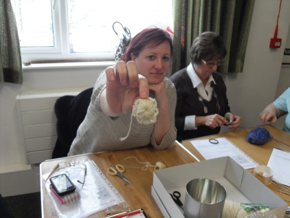 This month has been a busy one for the committee: first, we went to Lichfield to the Three Spires club with our Button workshop [March 2nd], then our regular club meeting fell on the 14th, with a presentation of aspects of pattern making by myself. In between, five of our number were busy with our entry to the Guild of Machine Knitters’ Sherborne Vase competition – titled ‘A Day in the Country’.