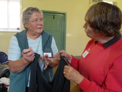 Pat gives Janet some advice on her knitting….