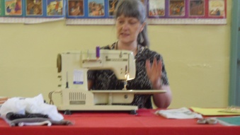 She entertained and informed us with tips and hints about using a sewing machine, then showed us how to finish knitwear on the machine.