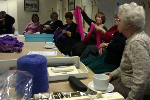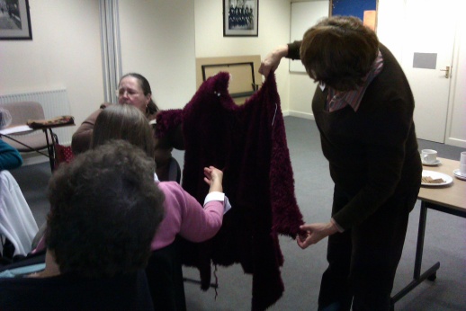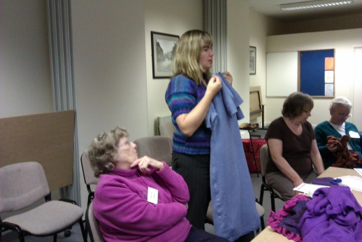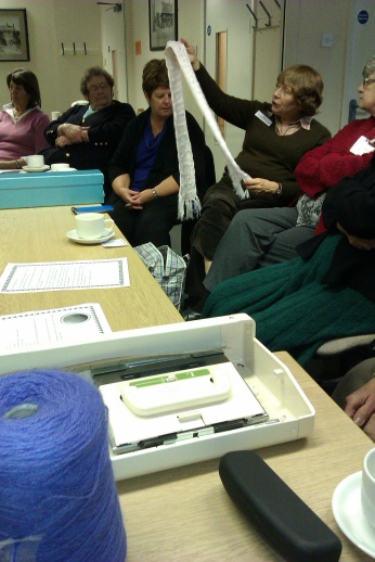 There was also a demonstration [by myself] of putting a frilled edge on a garment. A pattern for a scarf with this frilled edge can be downloaded by clicking here.