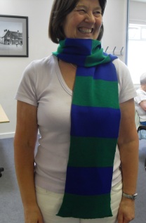 - · items made on a double bed with colour changes: including this ‘football’ scarf –