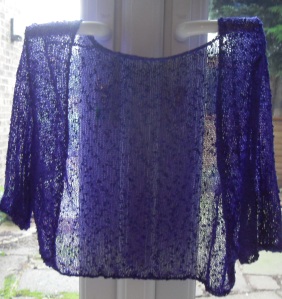 This is an elegant cover up for a sleeveless dress. Knit at T10 in Yeoman Grigna, takes very little yarn. Click on picture for pattern.