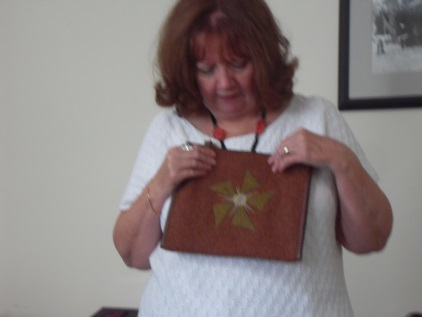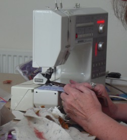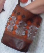 This month’s meeting involved a demonstration by Hazel Green, who featured on the cover of the latest Guild of Machine Knitters’ newsletter. She brought us a huge collection of felted knitting, and showed us how she made various bags and other accessories, including embellishments.