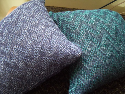 Cushion covers using 2 ply cotton in two colours, plated with a tuck pattern – click picture for pattern