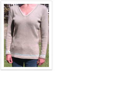 A jumper with a decorative v neck, with a wide range of sizes, knit in Yeoman Panama.