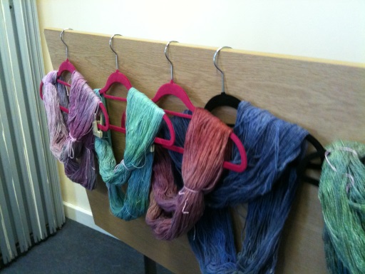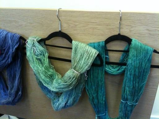 Although we were a select group of three, we managed to dye a large quantity of yarn, both vegetable fibre [cotton] and animal fibre [wool and cashmere].