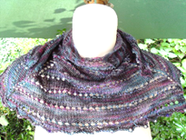 A small shawl which can be worn as shown, or the other way round, with the square part on the back, which will then stay put quite nicely.