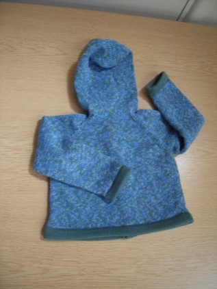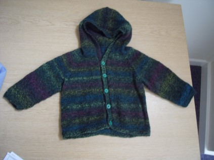 I [Lynda] had knit the original by hand. It is a fairly straightforward raglan cardigan with a hood.