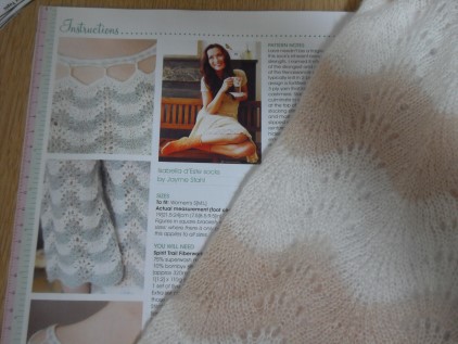 I chose to knit it as a seamless cardigan, knitting the sleeves first on four needles in the round, up to the armholes.