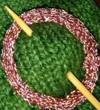 We looked at simple and not so simple methods on the knitting machine, as well as making ties and bands with icords, and making a shawlpin with wire on the machine.