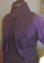 A pair of sleeves knitted as one, then a border attached to make the body of a cardigan. The example was plated, knitted on a standard gauge machine at T7.