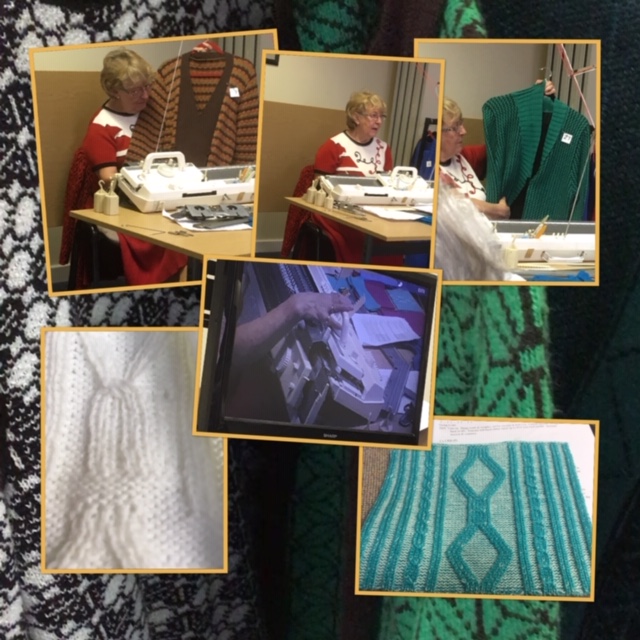 Sue Booth demonstrated using the ribber in fine style: from the basics of attaching the ribber, through setting it up and adjusting it, to basic ribs and more complex uses. Her little ‘asides’ come from a wealth of experience, and offer both beginners and experienced knitters some practical tips which make her garments so special.
