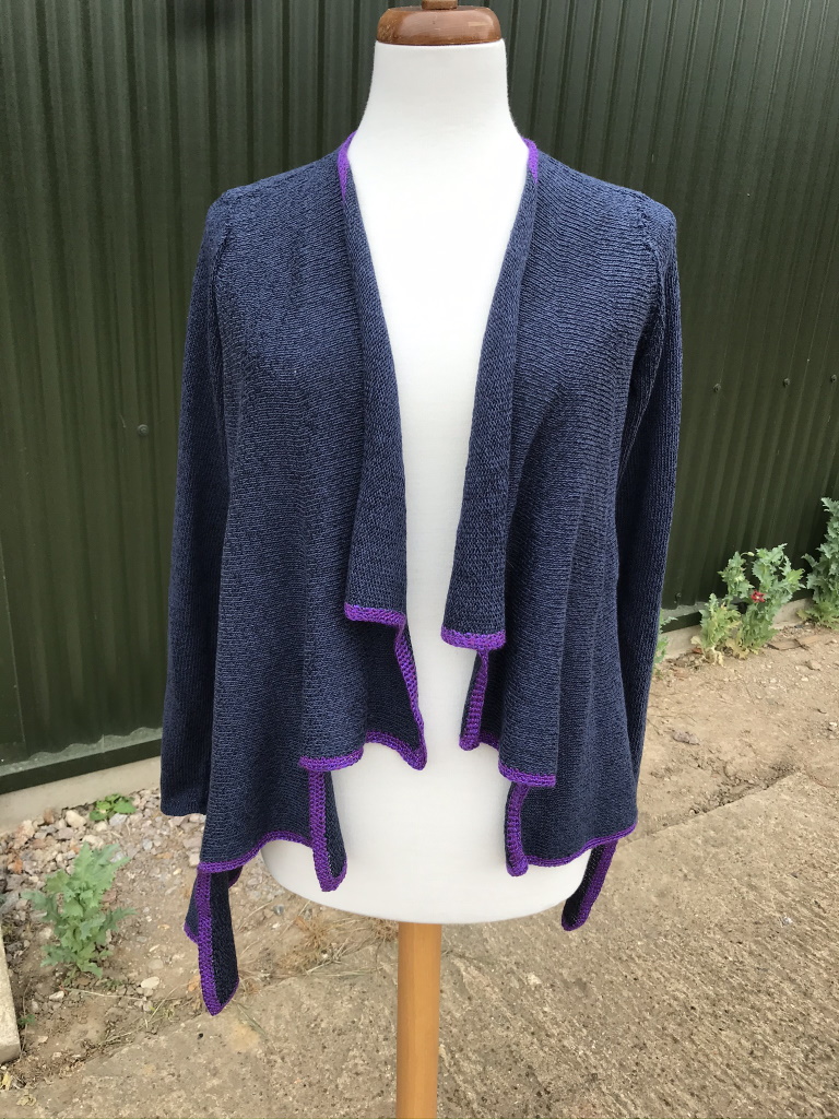 The version above was knitted in Yeoman’s Panama, 4 ply, at T7 on a standard gauge machine. 30 stitches and 42 rows per 10cm/4 inches. The pattern should have this information, but the wrong file keeps appearing – the wonders of technology!!!